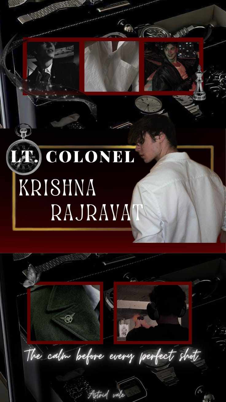 Krishna has dusky skin, curly hair, and warm brown eyes. He is 6'1, with a strong, athletic build and a cultured, portrait-like presence that commands respect effortlessly.