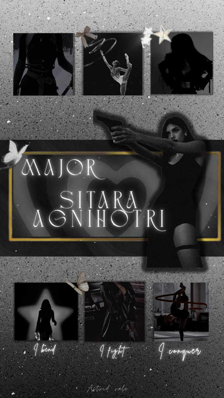 Sitara has long, black hair that flows like midnight silk, and fair, clear skin that contrasts beautifully against her deep, sharp eyes. Standing at 5'4, Her features are delicate yet strong - a perfect blend of beauty and discipline.