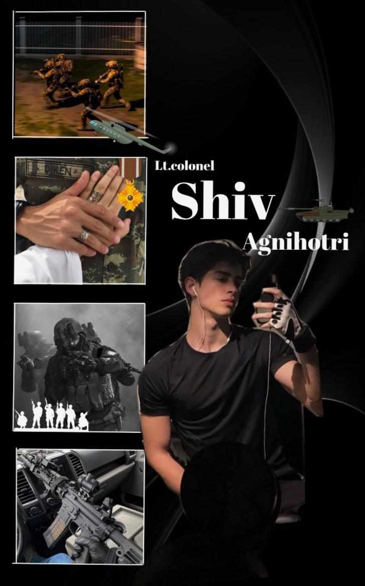 Shiv has short black hair, deep expressive eyes, and very fair, warm-toned skin. He is 6'0, with a strong, athletic build that shows discipline and strength.
